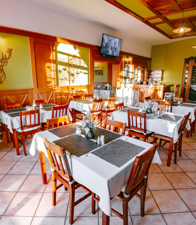 Naše útulné prostredie jedálne a bohaté švédske stoly na raňajky ponúkajú ideálne miesto pre začiatok každého dňa.